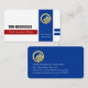 Overleaf, the blue color from the front vertical layer is brought over. Card details are over on the left with the gold logo at the top followed by your prestigious name and the contact details.