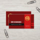 To your left is your prestigious name and job title. Sitting in the vertical red layer is a gold global logo you can use with your business name at the base of the card.
