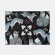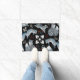 Stylized blue foxes with intricate floral designs Doormat