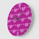 Stylized Deco butterfly - magenta and pink Large Clock