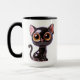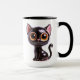 Stylized Sitting Black Cat in Porcelain Look, Big-Eyed Kawaii 3D Cartoon Illustration
