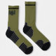 What does the well-equipped Alaska combat fisherman wear. That's easy; these socks! Based on a common military award, the Combat Fisherman Badge commemorates surviving combat fishing in Alaska. A black line graphic, "subdued" version of the full-colour Combat Fisherman Badge. It features a Sockeye Salmon over a conifer branch wreath. Text reading "ALASKA" is located at the top of the image.