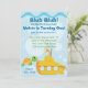 Enjoy some maritime fum with this adorable nautical invitation featuring a submarine, a turtle and some bubbles, the revers is a fun preppy stripe!