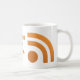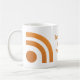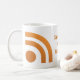 Features a dot and two radiating lines in orange similar to the icon found on blogs and websites that allows visitors to subscribe and follow.