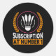 Subscription At Number 1 Funny Badminton Classic Round Sticker