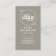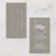 Elegant and classic, vertical white script font mini business card with customisable logo. Subtle and minimalist faux fabric texture grey linen texture on front and back.