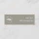 Elegant and classic white script font mini business card with customisable Logo on the front. Subtle and minimalist faux fabric texture grey linen texture on front and back.