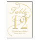 A beautiful and subtle elegance and a touch of whimsy make this table card special, The soft gold glitter calligraphy adds a touch of class. Great for weddings or any special occasion.