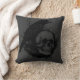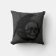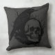Halloween pillow featuring a black crow and skull on dark grey background.