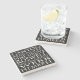 The coasters are gorgeous, a quality feel and heavy weight. They look like a precious archeological find. A rustic stone juxtaposed with a modern floral black and white print. I like the way the print goes slightly imperfect on the cut stone edges giving them a kind-of natural beauty.