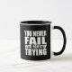 You can add some originality to your wardrobe collection with this " you never fail until you stop trying" text design with awesome typography font lettering, is a great gift idea for men, women, husbands, wife girlfriend, and a boyfriend who will love this unique motivation and inspirational saying artwork. The best amazing short positive sayings present for your wisdom collection. If you like this artwork, you can check out other similar designs and options.