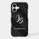 iPhone Case with Stylish Silver Monogram on Geometric black pattern silver foil polka dots ornament (a silver foil ornament - are simulated). For Creation and Customise Your Personal Monogram template. Business Man Fashion Graphic design. Electronics > Phone Cases > iPhone Cases > iPhone XS Cases. iPhone Case trendy gift (for him) From "Successful Businessman" - collection. Elegant Gift Decoration for a friend, brother, father, dad, boy, boy friend, husband, business partner or concept design for startup business, birthday, anniversary, holiday, fathers day, perfect for every occasion. Personalise a own for your Trendy Elegant Design.