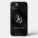 iPhone Case with Stylish Silver Monogram on Geometric black pattern silver foil polka dots ornament (a silver foil ornament - are simulated). For Creation and Customise Your Personal Monogram template. Business Man Fashion Graphic design. Electronics > Phone Cases > iPhone Cases > iPhone Cases. iPhone Case trendy gift (for him) From "Successful Businessman" - collection. Elegant Gift Decoration for a friend, brother, father, dad, boy, boy friend, husband, business partner or concept design for startup business, birthday, anniversary, holiday, fathers day, perfect for every occasion. Personalise a own for your Trendy Elegant Design.