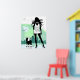 Lady walking dog with city and aeroplane in background. Created in shades of green, black and white. If it wasn't for dogs, some people would never go for a walk.