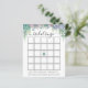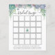 Bridal shower bingo card featuring a cascade of purple, green and dusty blue succulents, eucalyptus and greenery. A fun way to interact with shower guests while the bride-to-be opens her gifts.