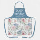 Elegant botanical chef apron featuring a watercolor succulent floral pattern, the title "queen of the kitchen", their name, and the year.