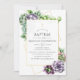 Trendy succulents baptism, christening or dedication invitation with gold geometric frame and sage green watercolor wash reverse.