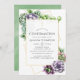 Trendy succulents confirmation invitation with gold geometric frame and sage green watercolor wash reverse.