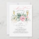 Gold leaves succulents greenery and pink flowers brunch and bubbly bridal shower invitations
