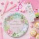 Add a touch of desert charm to your table decor with a design that captures the modern beauty of desert botanicals, making it ideal for a chic and memorable bridal shower suite. This paper plate features a lovely watercolor wreath, meticulously crafted with succulents in a delightful array of pale green, rich dark green, and delicate pink hues. These vibrant succulents pop beautifully against a blush pink background, creating a sophisticated and harmonious palette. Easily change the details to your own and if you would like to, change the font style, size, colour and placement.