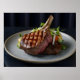 Succulent Grilled Beef Steak with Perfect Sear Marks on Rustic Plate - Luxurious Gourmet Dining Experience. Experience gourmet dining with this succulent grilled beef steak.