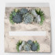 Envelop design with pale blues & green tubular flower looking plants with fleshy, sap-filled leaves for your beach wedding stationary