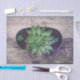 Succulent potted plant floral country rustic style green art painting craft decoupage tissue paper. Beautiful, botanical wood print design gift wrap. Image copyright Marg Seregelyi Photography.