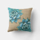 Two aqua succulents are placed on a variegated tan burlap background.