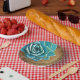 These lovely succulent paper bowls will work for garden parties, engagement parties, bridal showers, weddings and more. Succulents are huge right now. This aqua one is placed on a rustic brown background. You can edit the background colour, add text, font or font colour to suit your needs.