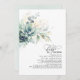 Watercolor greenery, sage green succulents and gold eucalyptus leaves baby shower invitations