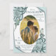 Water-wise succulents in colours from mint blue to pine green on a pine green trellis photo card to personalise