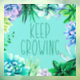 Succulents form a green, blue, and purple border around the motivational message "Keep growing."