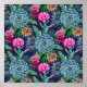 Watercolor exotic tropical succulents, cacti and banana leaves flowers garden on a dark blue background