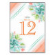 Decorate your wedding or event tables with these beautiful double-sided watercolor art green, blue green and orange succulents table number cards. A great idea to help guests find their seats at a succulents wedding or succulents foliage orange and green themed event. You must change the number to each number that you need and add them each your cart, one at a time. If you have any questions or need help or other wedding items in this style please contact me. Original watercolor painting and design by Sarah Trett. www.sarahtrett.com for www.mylittleedenweddings.com