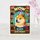 Turn any birthday into an internet-fueled celebration with this next-level Doge meme greeting card! Featuring the iconic Shiba Inu in a party hat, this card is bursting with over-the-top color, floating balloons, confetti, cake, and the ultimate meme energy. It's got all your favorite Doge phrases!