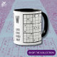 This is a fun SUDOKU coffee mug for when you're attacking those Sudoku puzzles. The simple, black and white design shows two incomplete puzzles on the front and back, with a CUSTOMIZABLE MONOGRAM and text in the middle. This would make an ideal gift for the Sudoku enthusiast in your life. Matching gifts available.