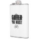 The flask itself is fine. It’s a cheap flask, obviously bought in bulk, however am prepared to overlook that. Given that it is a personalized item, I would have liked to have seen gift boxing instead of the generic packaging. Terrible printing, and/or quality. It’s a cheap, tacky vinyl. It is not cut straight and is also applied in a way that it is overhanging the bottom, causing the glue to catch on items and it will eventually roll and tear, damaging the wrap.