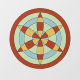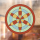 This design is based on a mediaeval apotropaic (protective) symbol carved in stone inside a church in Worlington, Suffolk, England. Here the symbol features hues based on the palette of colours from the Bayeux tapestry.