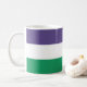 This design features the flag of the suffragette movement, which in the 20th century fought for the right to vote in public elections, known as women's suffrage. The term "suffragette" was first coined to belittle the movement, but the women involved soon accepted and embraced the new name as a sign of their refusal to accept male-only elections. The movement continues to inspire feminist and other political campaigns today.