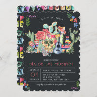 Sugar Skull Dia de La Muerte Halloween Birthday In Invitation