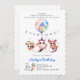 This Sugar Glider Birthday Party invitation showcases enchanting watercolor artwork featuring four adorable sugar gliders in playful party hats, surrounded by confetti and soft pastel accents. A whimsical pastel balloon highlights the age, bringing extra joy to the celebration's theme. Soft purples, pinks, blues, and cream hues set an inviting tone, while customizable details allow you to personalize the invitation for a magical birthday experience. Ideal for sugar glider lovers, boys, girls, animal lovers, and anyone seeking a unique, artistic birthday invite.