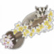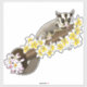 A sugar glider sitting on a tree branch with small pink, white and pink flowers all around. The sugar glider and flowers are all drawn in a tattoo style in a backdrop of blue