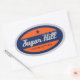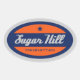 Oval signage design featuring the neighbourhoods of New York City. Official orange and blue colours of NYC. Sugar Hill neighbourhood of Manhattan.