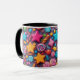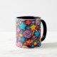 A bold and electrifying pop art mug design that fuses candy-coloured chaos with a disturbed aesthetic. Swirls of neon pink, acid green, and electric blue collide with jagged shapes and warped facial expressions, creating a visual overload of sweetness and madness. The mug’s surface becomes a canvas of emotional dissonance—playful yet unsettling, glossy yet fractured. This piece challenges the cheerful veneer of pop culture, revealing the twisted undercurrent beneath the sugar-coated surface.