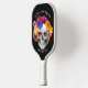 Sugar Skull Art Collage Colourful Flowers on Black Pickleball Paddle