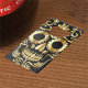 Sugar Skull Art. Mexican style Day of the Dead themed creative artwork. Black and Gold Skull design is created by combining abstract shapes and patterns in various colours.