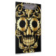 Sugar Skull Art. Mexican style Day of the Dead themed creative artwork. Black and Gold Skull design is created by combining abstract shapes and patterns in various colours.