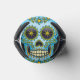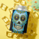 Dia de los Muertos sugar skull is so colourful in blue with flowers and gold sparkle eyes.
