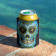 Sugar Skull Blue Floral Can Cooler