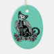 Dia de los Muertos (Day of the Dead) sugar skull cat with angel wings, roses and hearts.